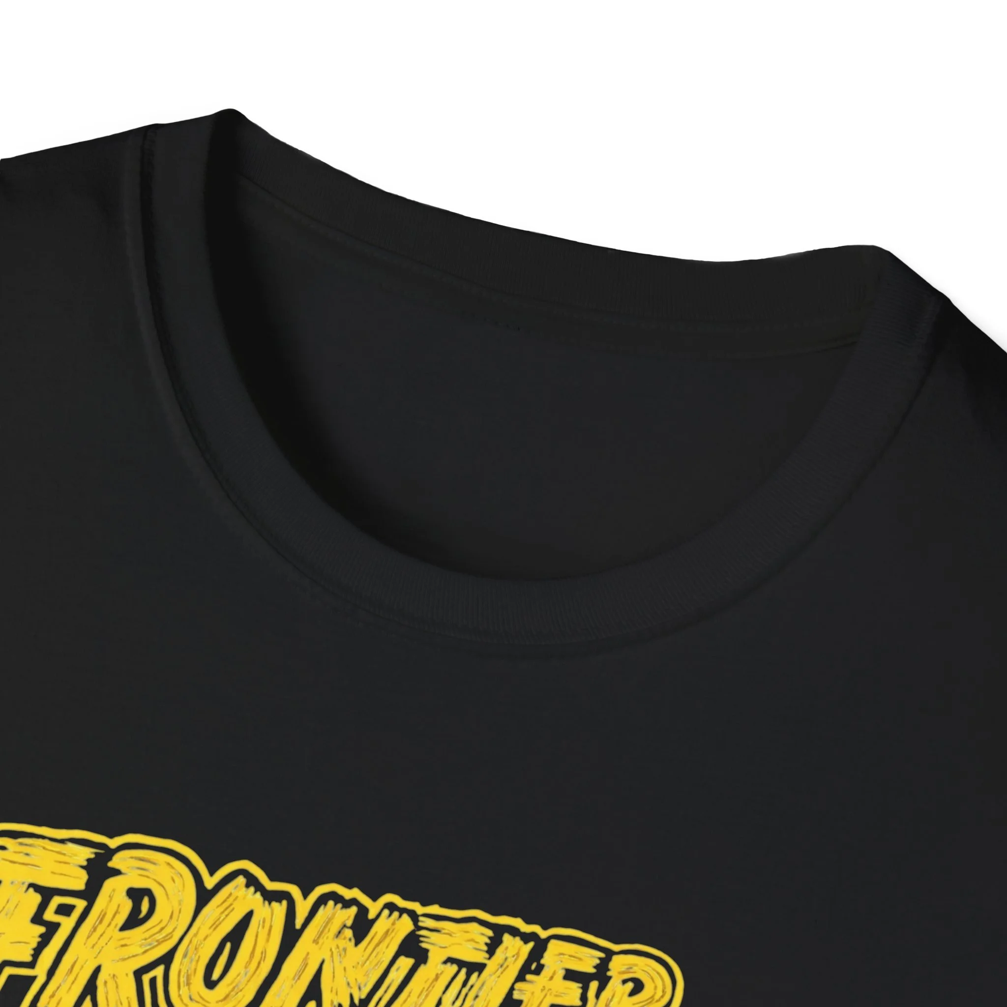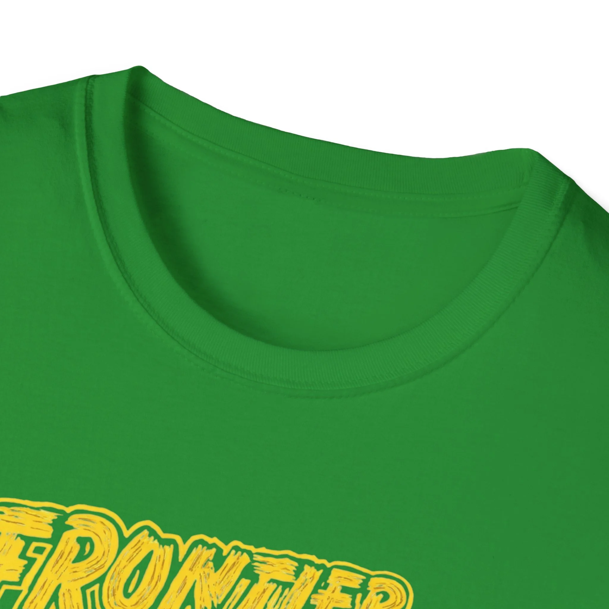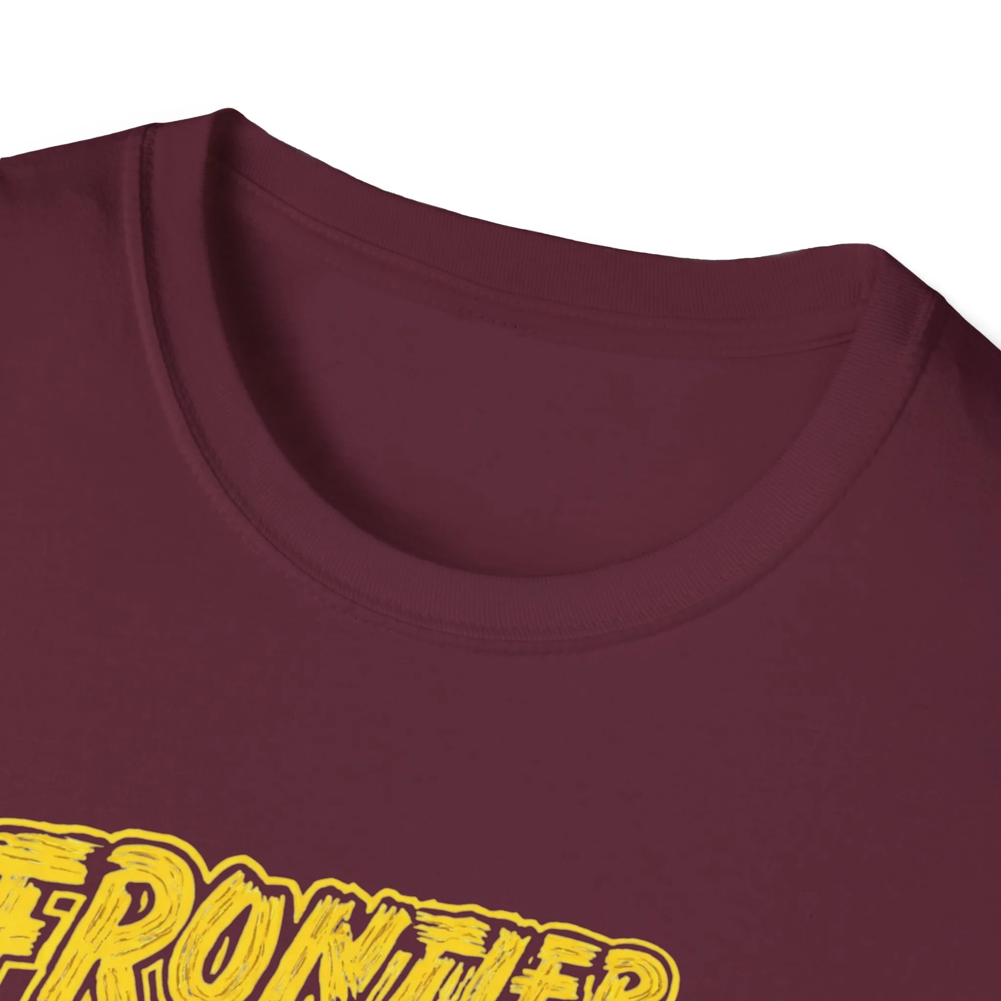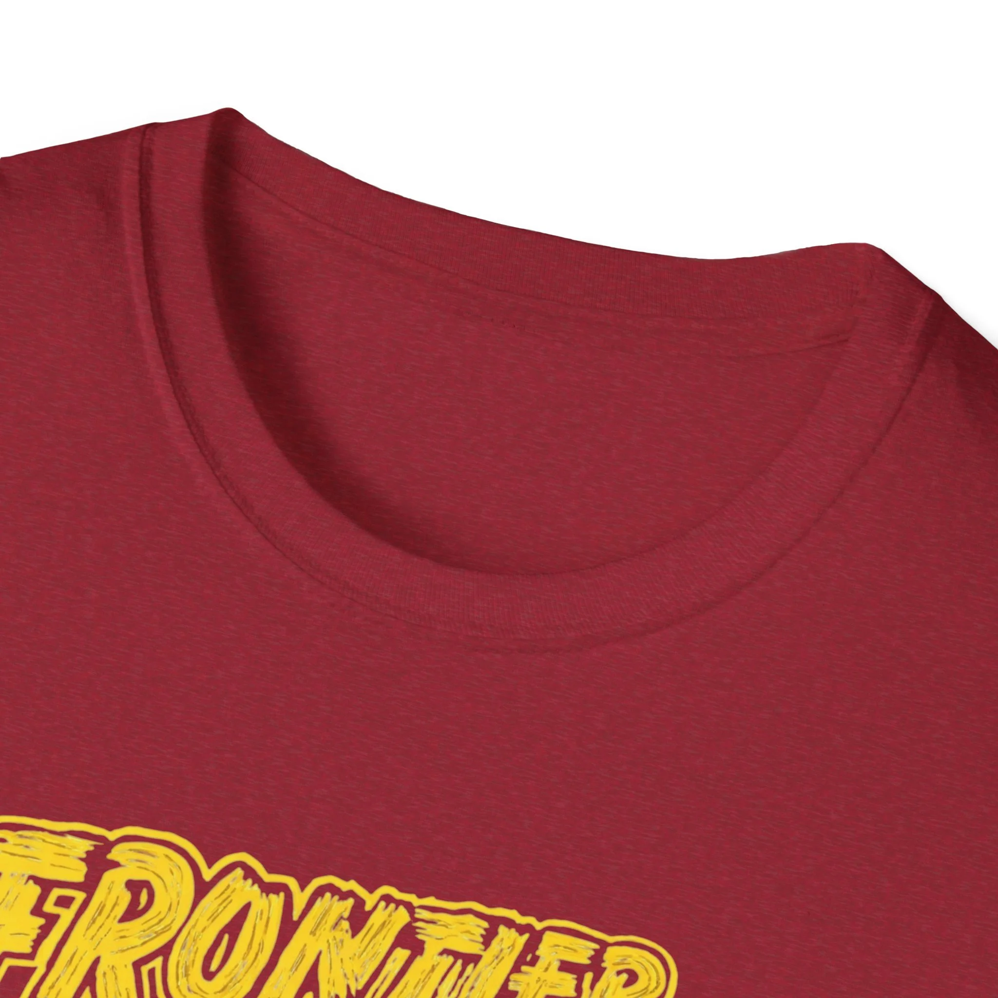 A soft, lived-in tee that carries the rustic energy of Adirondack trails and small-town summer nights. The vintage-inspired yellow print reads “Frontier Town” over a sunburst and a row of pine silhouettes — a design that feels like a weathered concert poster or a road-trip souvenir. Lightweight ring-spun cotton drapes easily, so this shirt becomes a go-to layer for morning coffee on the porch, late-afternoon hikes, or low-key gatherings at the lake. It pairs naturally with worn denim, muddy boots, or a flannel tied around the waist. The breathable fabric and classic crew cut keep you comfortable while the bold chest graphic quietly shows where your heart wanders.