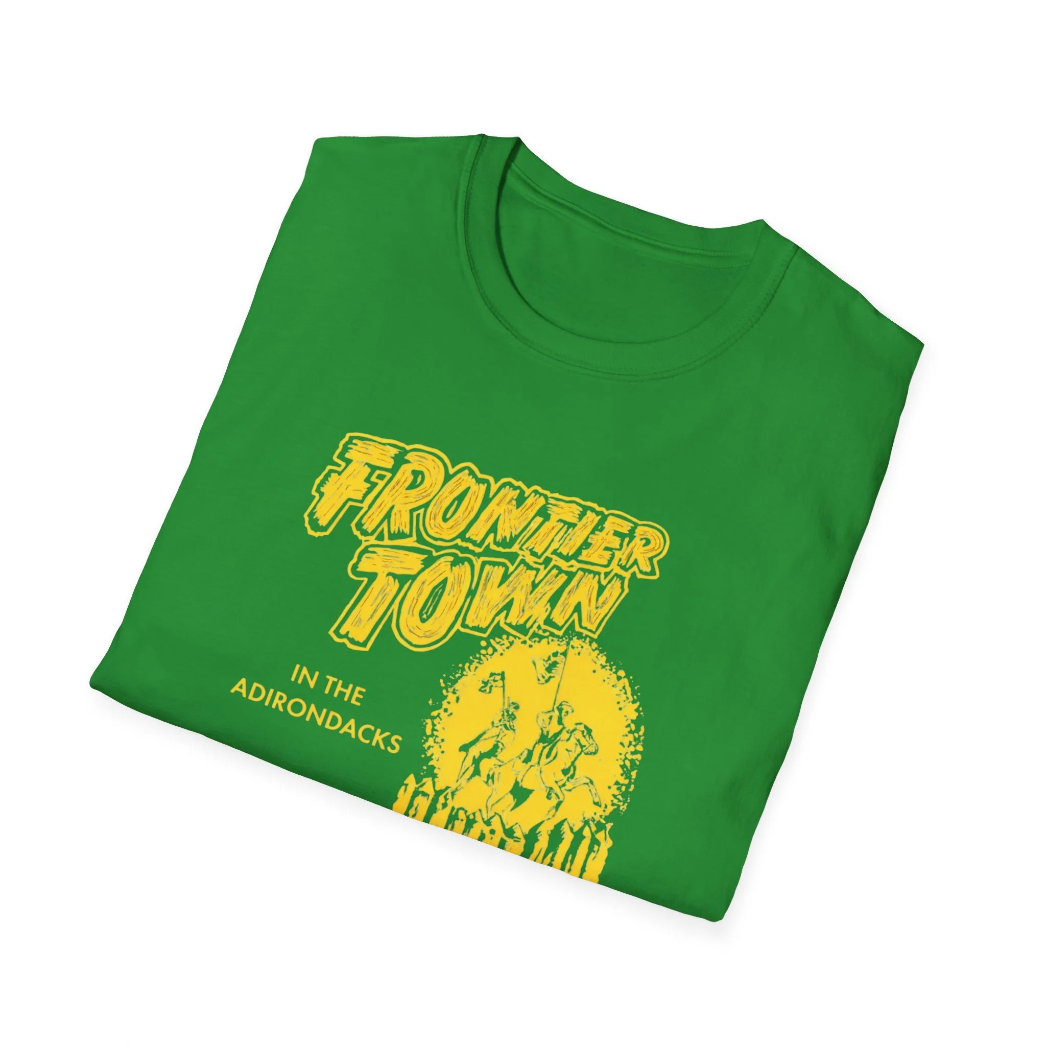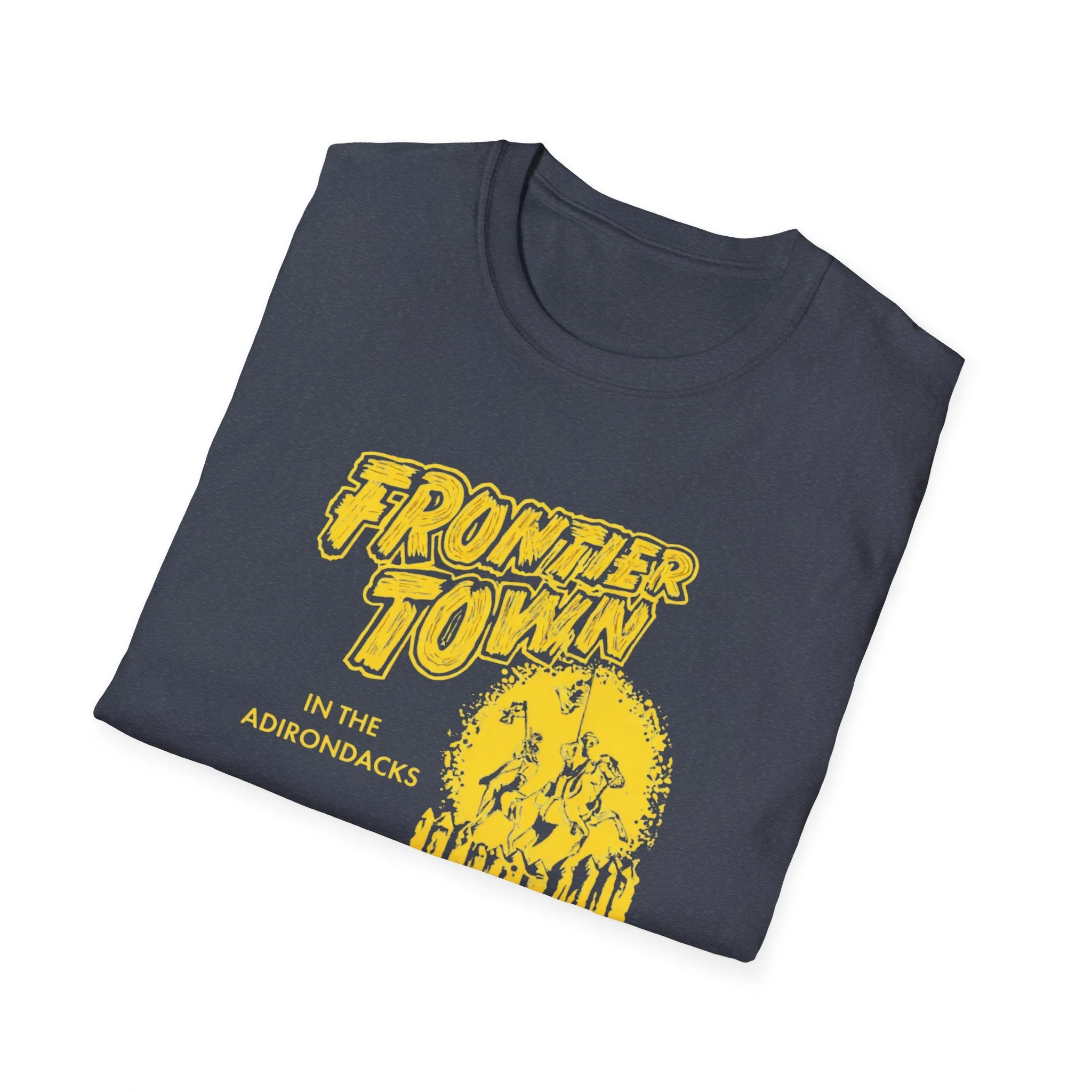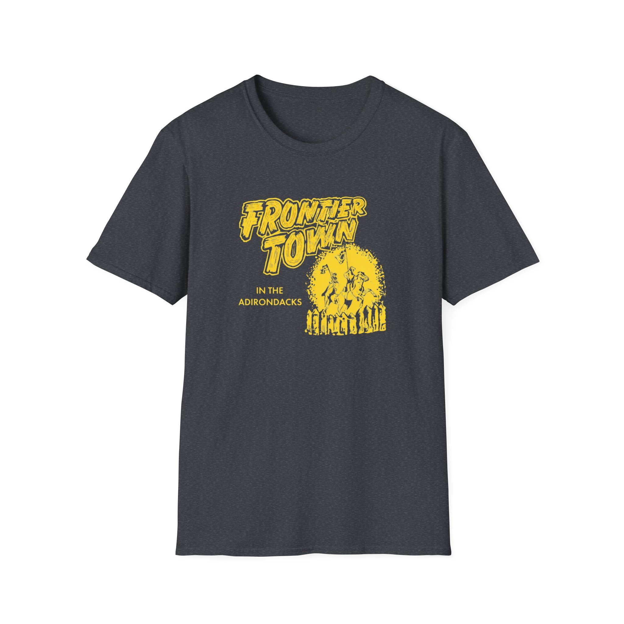 Frontier Town Adirondacks T-Shirt — Retro Yellow Graphic Tee