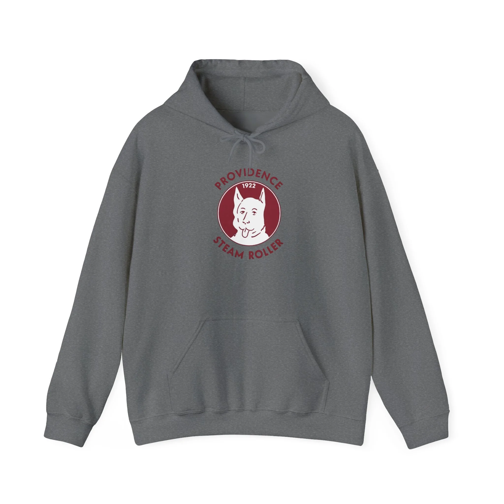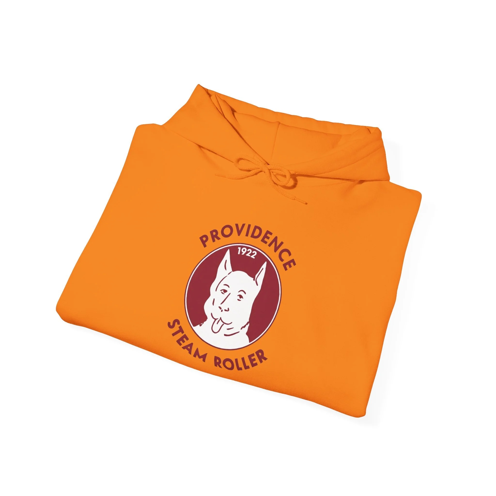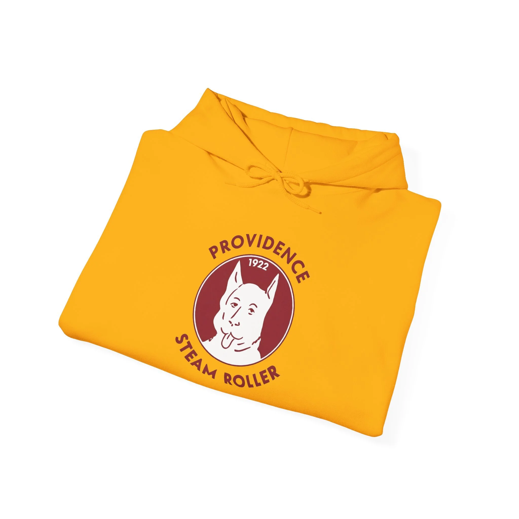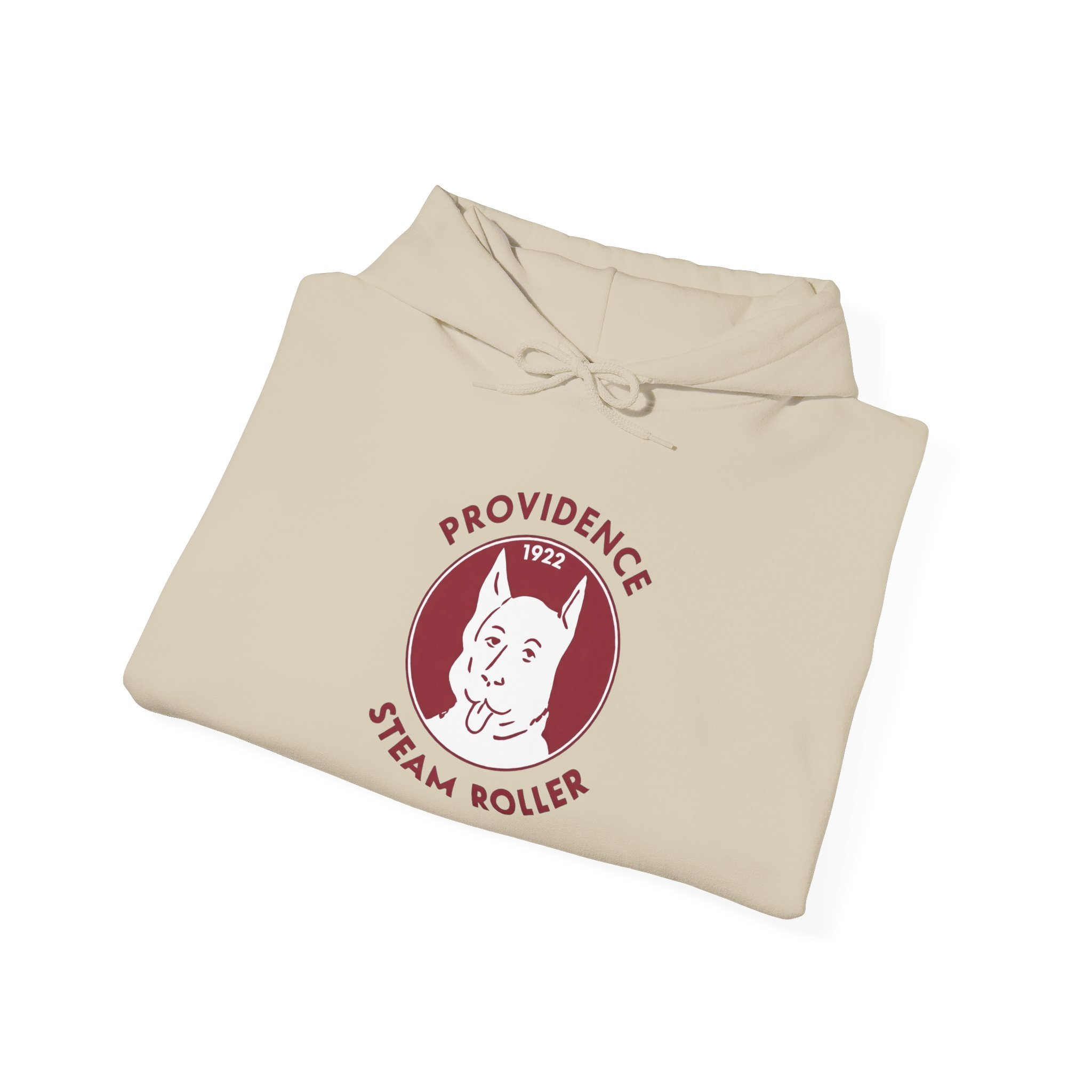 Long before the Patriots, before even the modern NFL took shape, Rhode Island had the Providence Steam Roller — one of the original charter teams in the league that would become the NFL. Playing in the 1920s, this gritty Providence squad earned their name from the industrial might of the city, and their mascot — that tough, tongue-out bulldog (or terrier-like pup) with attitude to spare — perfectly captured the working-class spirit of early pro football in the Ocean State. The Steam Roller rolled through opponents with steam-powered determination, leaving a legacy as one of the league's founding fathers. This cozy, retro hoodie brings back that classic 1920s vibe: the proud, grinning dog head centered in a maroon circle (nodding to the team's early colors), arched “PROVIDENCE” above and “STEAM ROLLER” below, with the founding year “1922” proudly displayed — all distressed just enough to feel like a faded game program or fan patch from the pre-modern NFL days. Pullover style, soft fleece interior, and built for game-day comfort or everyday wear. Perfect for: