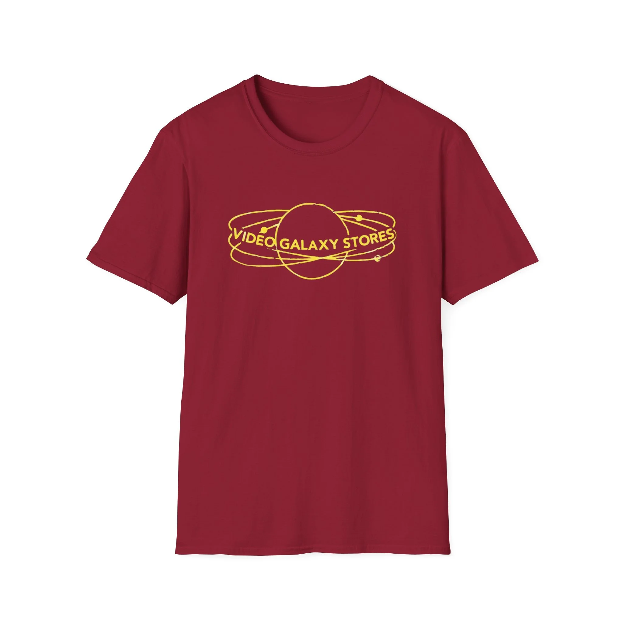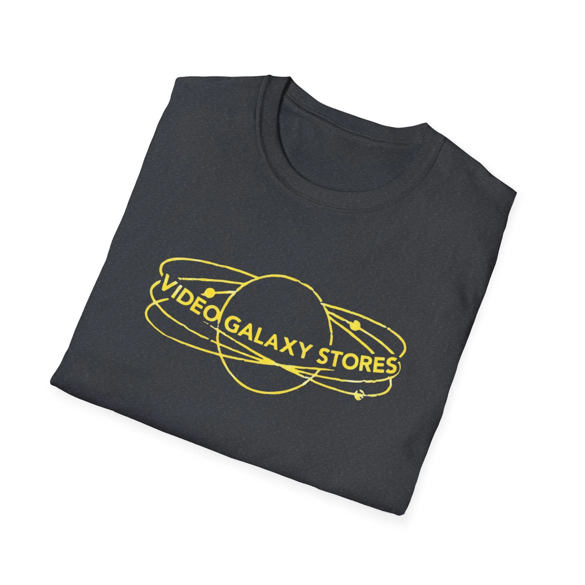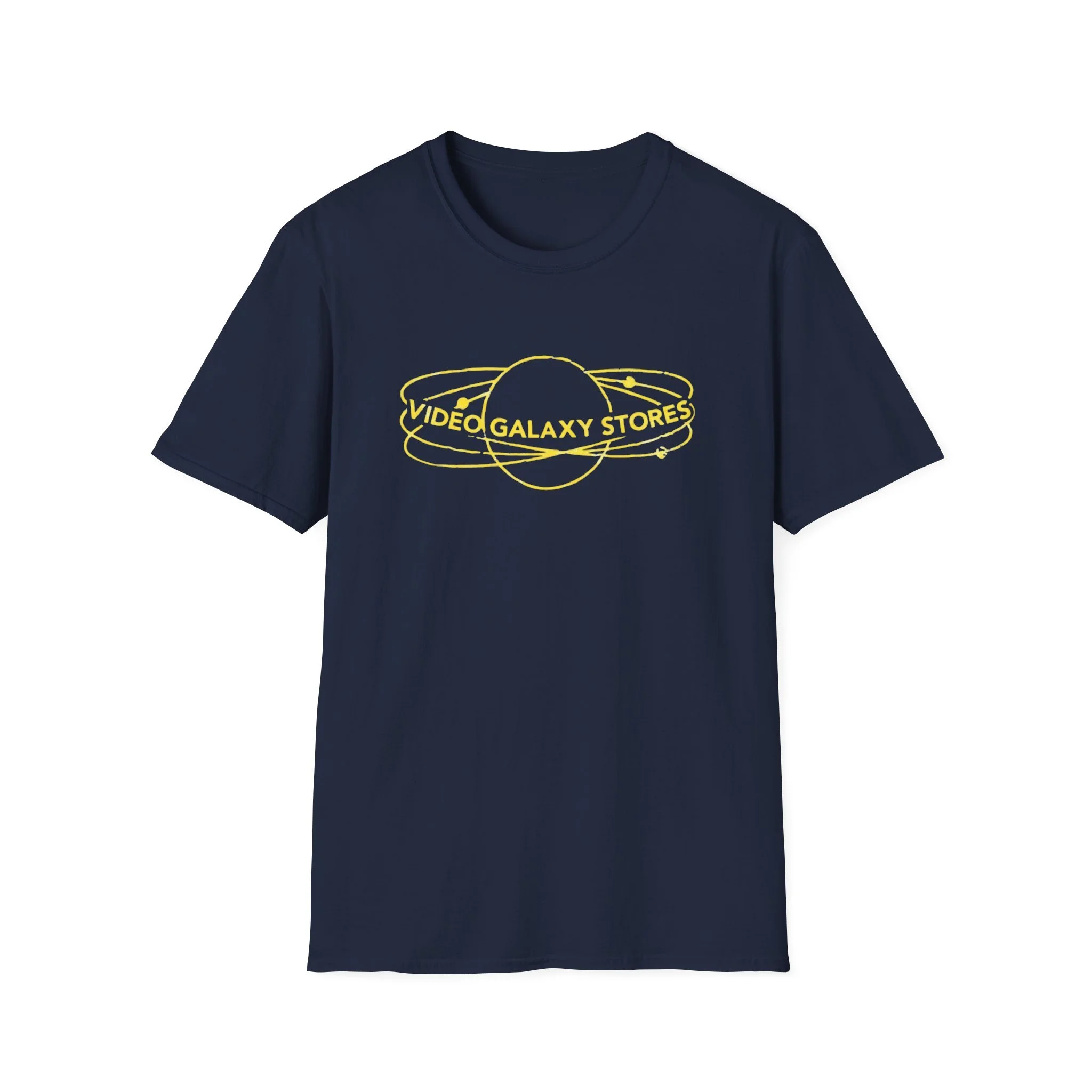 Video Galaxy Stores T‑Shirt — Retro Neon Planet Logo Tee